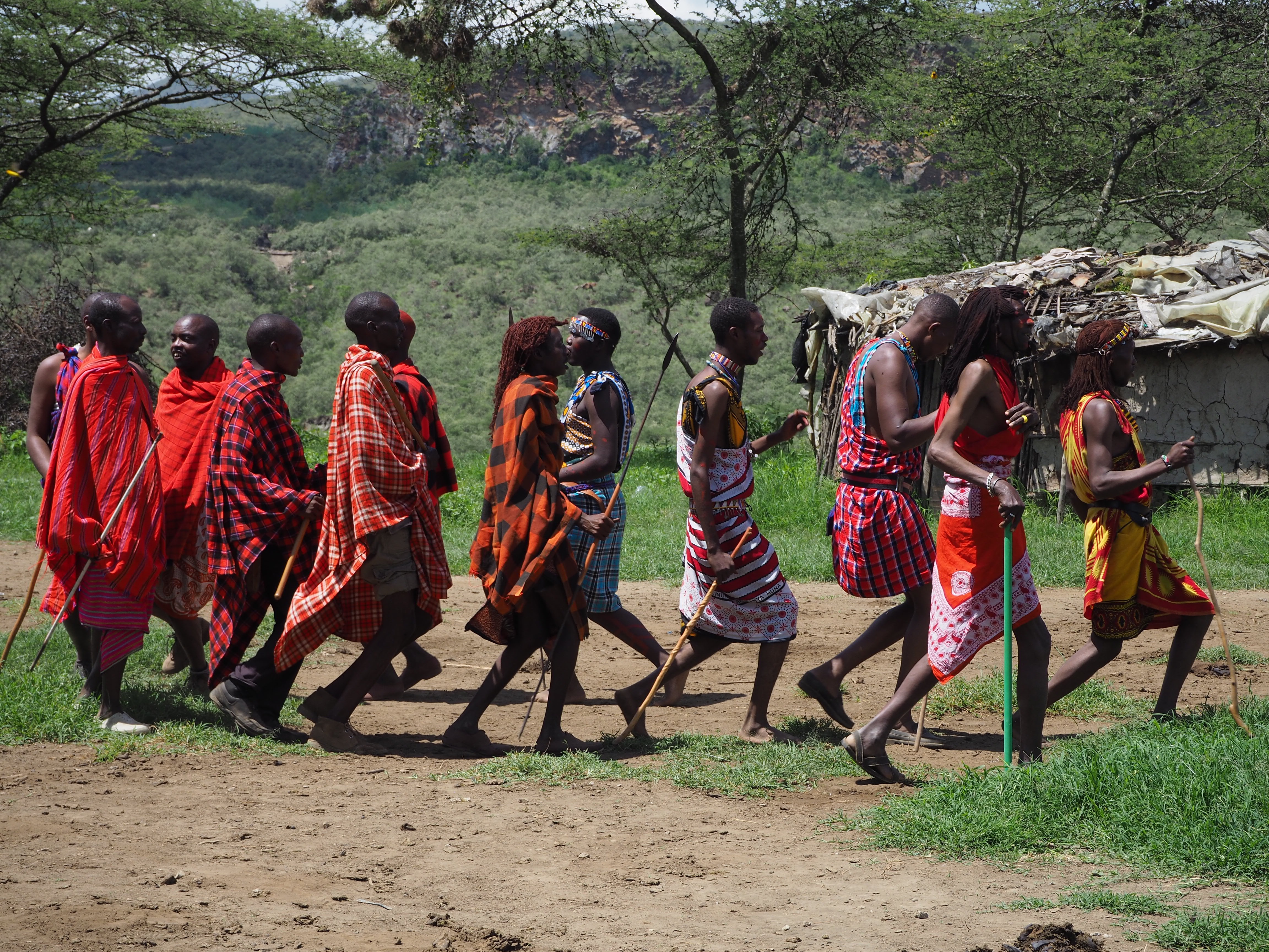The first time we heard about the Maasai in Hell’s Gate National Park was sitting in a classroom where the conservation specialist gave us an introduction. We remember her words like this: “The Maasai that used to live around here are settled, the government set up homes for them and land… They’re not living in the Manyattas any longer and have nice houses, they’re very civilized now”. With those words, we headed for the Valley of Death, the ancient grazing grounds for the Maasai people and their cattle. Walking through the gorge and up the ridge, we entered the center of the Maasai village. In the short time we had, they showed us some of the important parts of their traditions. The Maasai, believing they originated from the heavens, thought they could get closer to their origins by jumping for the sky – which they performed during a ritualistic dance.